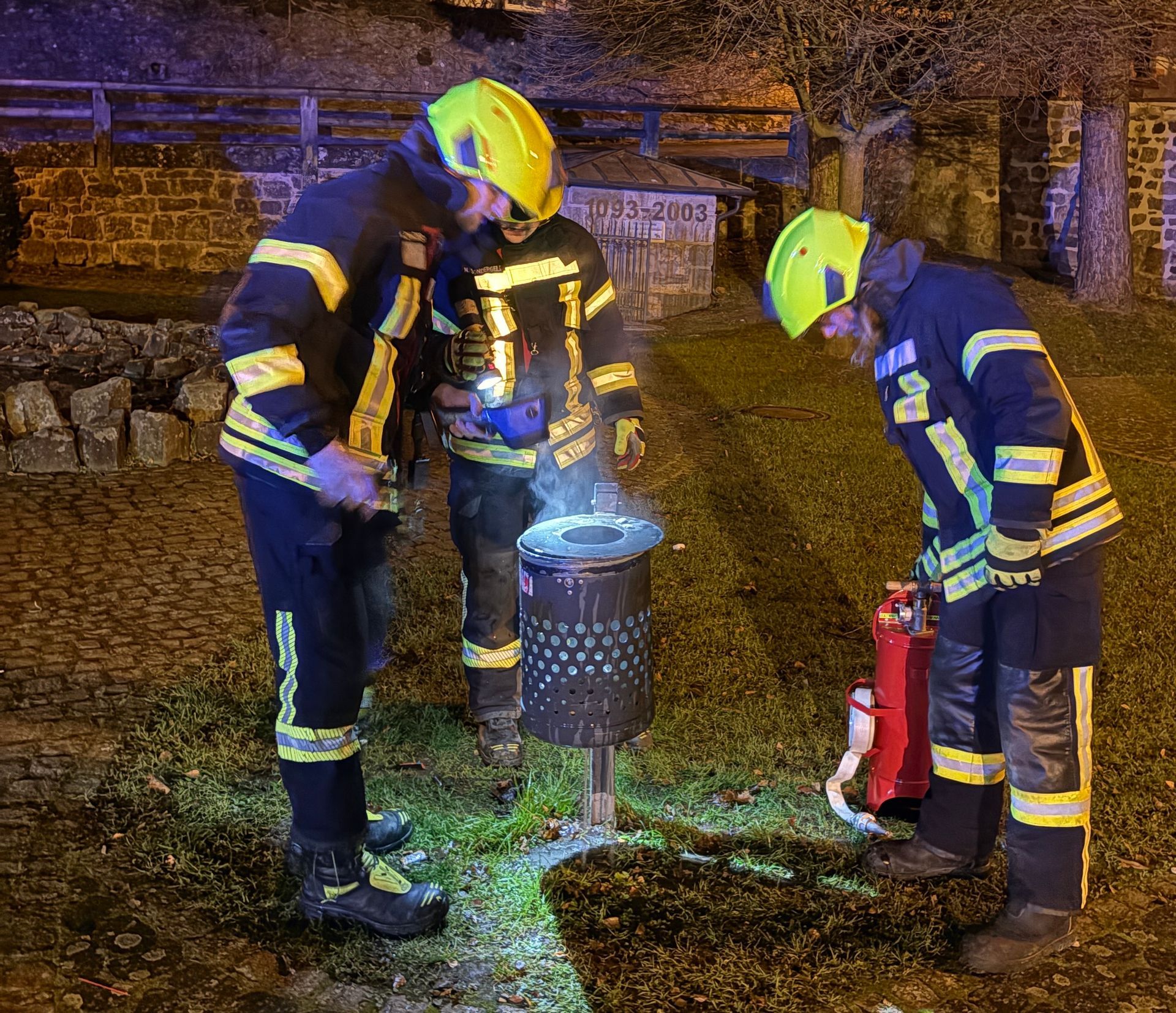 In einem Mülleimer am Dorfbrunnen brannte etwas Verpackungsmaterial, was zu einer Rauchentwicklung führte.
