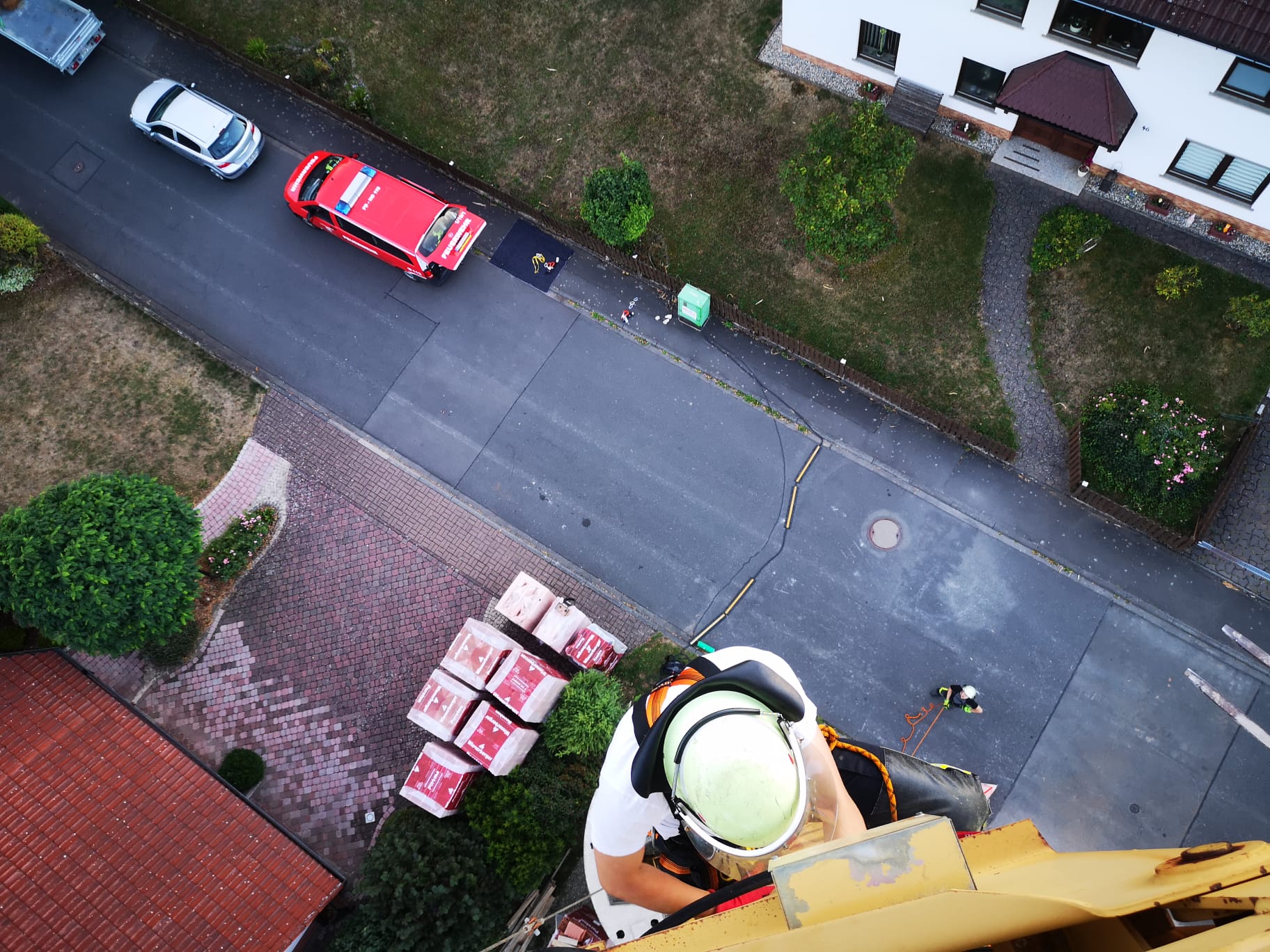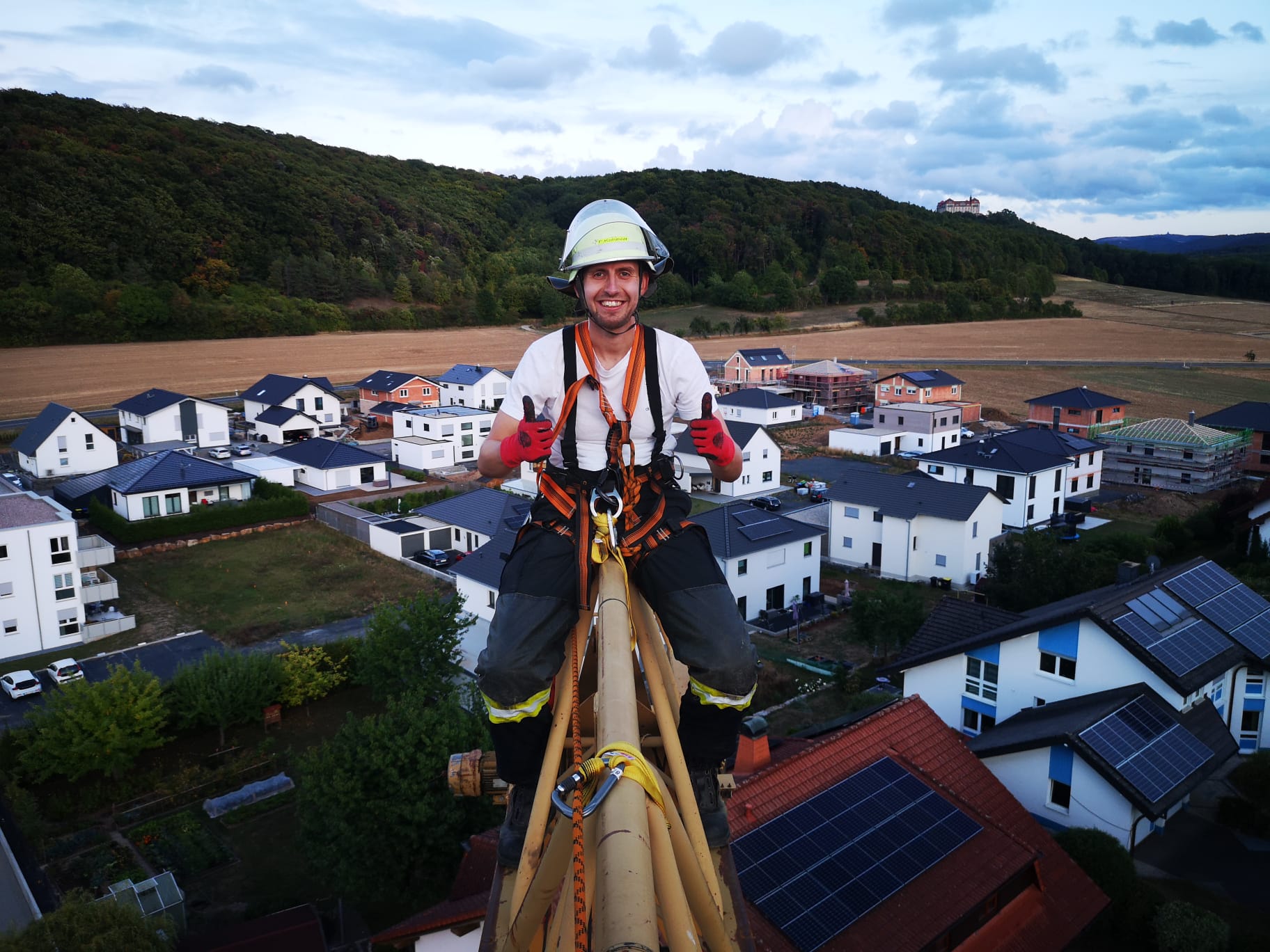 Hoch hinaus ging es bei der gestrigen Freitagsausbildung für einen Teil der Einsatzkräfte des 1. Löschzuges. Im Vorstieg musste ein Baustellenkran erklommen und eine verletzte Person an dessen Spitze gesichert und erstversorgt werden. Im Realeinsatz würde danach die Person über eine Drehleiter oder spezialisierte Kräfte von Berufsfeuerwehren oder der Bergwacht gerettet werden. Die Erstsicherung und Erstversorgung wird allerdings in der Regel über die Standortfeuerwehr durchgeführt.