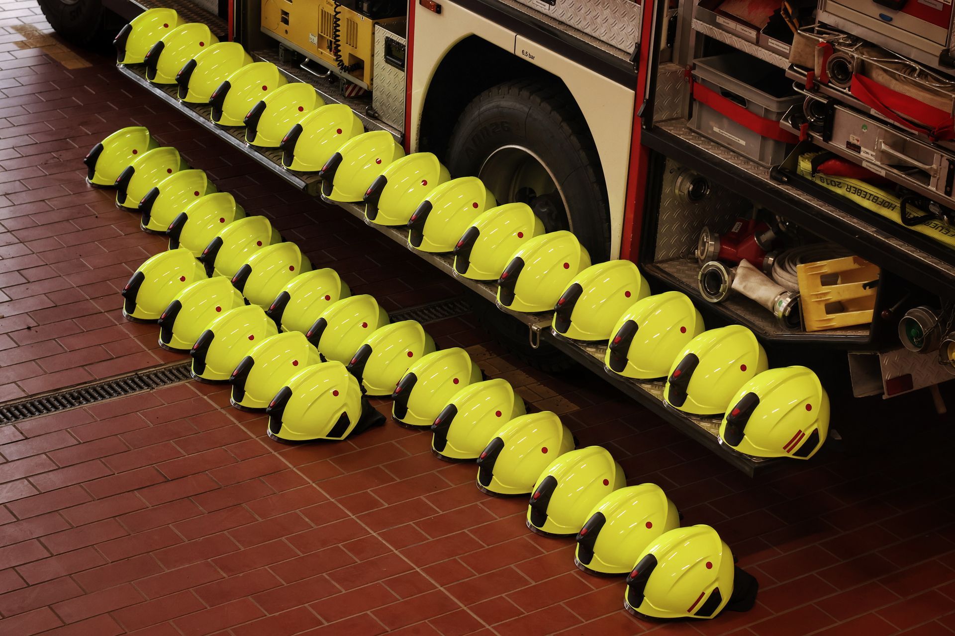 Die neuen Helme ersetzen die teils mehrere Jahrzehnte alten klassischen Feuerwehrhelme und bringen einen hohen Mehrwert an Komfort und Sicherheit mit sich. Durch die neongelbe Farbe sind die Einsatzkräfte auch tagsüber sehr gut zu erkennen! Außerdem sind die Helme mit einer integrierten Kopflampe ausgestattet.