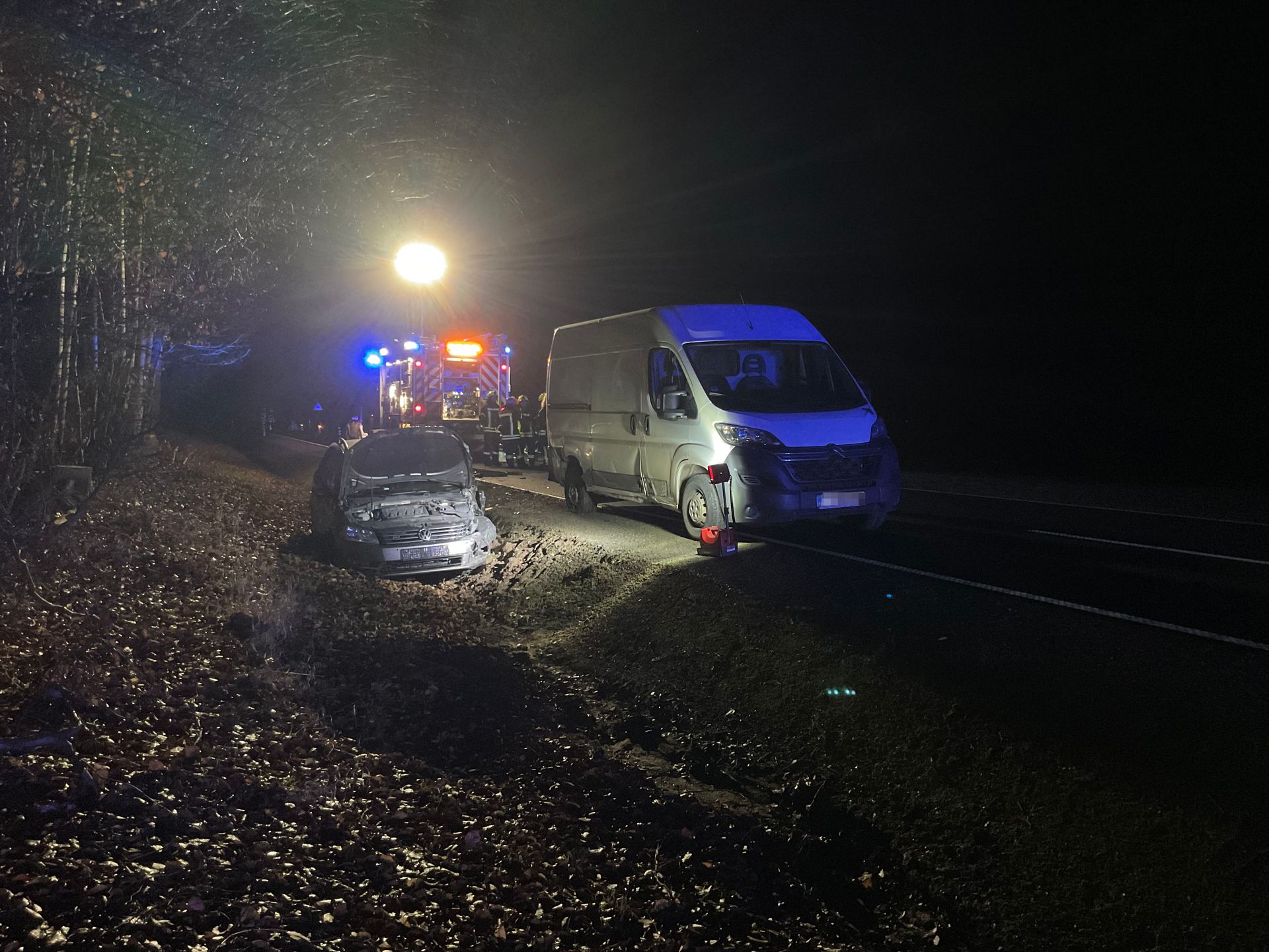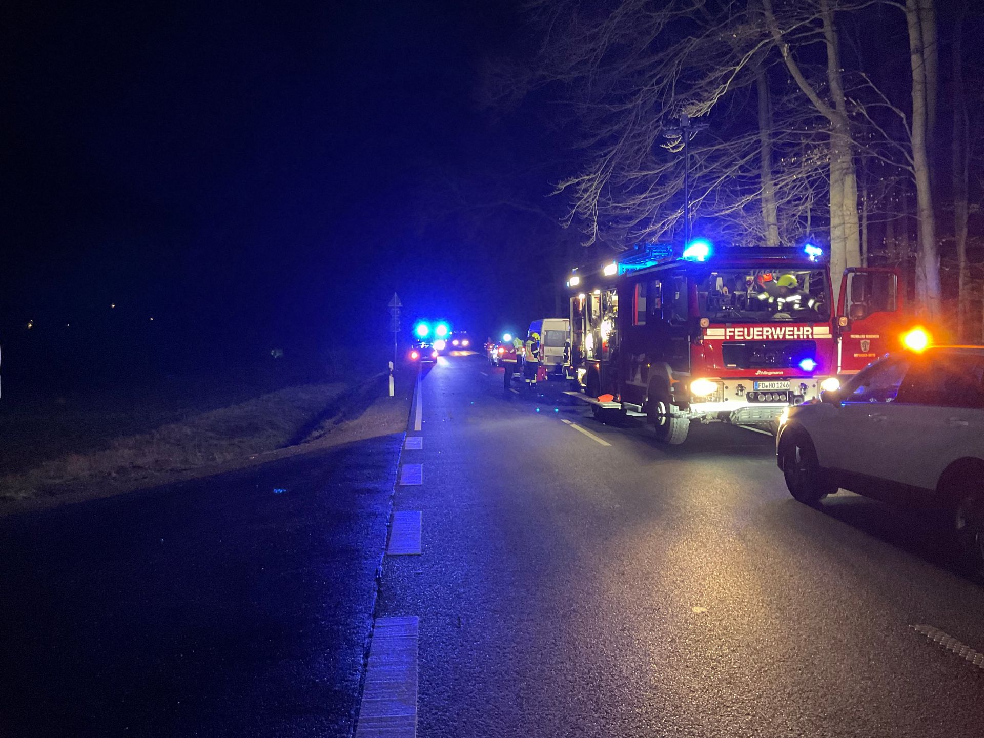 Auf der L3174 kam es zu einem Zusammenstoß zwischen einem PKW und einem Transporter, daraufhin wurde der PKW in den Seitengraben der Straße geschleudert. Beide Fahrzeuge waren mit einer Person besetzt. Der leicht verletzte PKW Fahrer konnte mit Hilfe von Ersthelfern sein PKW eigenständig verlassen und wurde beim Eintreffen der Feuerwehr bereits rettungsdienstlich versorgt. Der Transporter-Fahrer war augenscheinlich unverletzt.